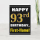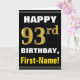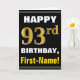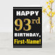 Cartão Negrito, Preto, Faux Dourado 93º Aniversário com C