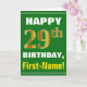 Cartão Negrito, Verde, Faux Dourado 29º Aniversário com C