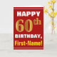 Cartão Negrito, Vermelho, Faux Dourado 60º Aniversário co