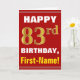 Cartão Negrito, Vermelho, Faux Dourado 83º Aniversário co