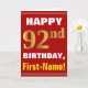 Cartão Negrito, Vermelho, Faux Dourado 92º Aniversário co
