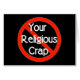 Mantenha os batedores da bíblia fora de seu patamar e fora de seu espaço imediato com este corte vermelho familiar do círculo e as palavras "seu excremento religioso." Grande presente para ateus e Freethinkers.