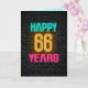 Um sinal de neon brilhante na parede de tijolos para 66 anos.