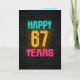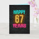 Um sinal de neon brilhante na parede de tijolos para 67 anos.