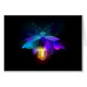 Voz mecânica, antiga, com lâmpada e asas finas brilha cor de laranja, roxo, turquesa sobre fundo preto. Estilo Steampunk.