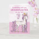 Um doce pônei rosa como a sua neta está saltitando com o número sete! Detalhes com aparência dourada estão entrelaçados em sua crina e cauda. Cartão perfeito para desejar à sua neta o seu 7º aniversário!