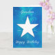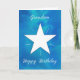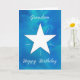Celebre seu neto com um cartão de aniversário que é tão vibrante e especial quanto ele! Uma impressionante mistura de cor d'água de blues, verdes e chaleiras cria um fundo dinâmico, enquanto uma estrela branca brilhante no centro irradia com energia e luz. Perfeito para qualquer neto, este design alegre e elevador é uma maneira maravilhosa de lembrá-lo que ele é uma verdadeira estrela em seu dia especial!