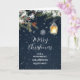 Feliz Natal para o neto, seu cartão de família com verde-inverno rústico, lanterna vintage e padrão de flocos de neve em um céu azul marinho.