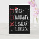 Cartão Nice Naughty I Swear I Tried Christmas List Family