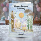 Soft and serene, this hand-painted watercolor captures a Snowy Owl resting on a winter branch beside a layered vanilla birthday cake topped with gentle purple frosting and glowing candles. Ivy-covered trees in the background add a quiet January charm, making this a sweet and thoughtful birthday scene created especially for a niece who loves birds, nature, and peaceful winter moments.