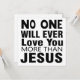 Ninguém jamais te amará mais do que Jesus, este design cristão mostra uma mensagem de texto preto e branco dizendo: "Ninguém jamais te amará mais do que Jesus".