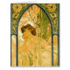 Uma imagem do nouveau da arte de uma jovem mulher bonita que aprecia as matiz rosados da noite. Veste um comprimento completo, vestido do ombro-menos. A recompensa das flores e das naturezas cerca-a. (De umas 1899) litografia do século XIX original por Alfons Mucha. Todos os direitos reservados arte 2014 do padre do ©
