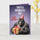 Uma design engraçada com um gorila prateado segurando um presente, que maneira hilária de desejar feliz aniversário a um amigo ou amado!