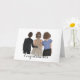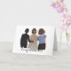 Pais abraçando a noiva no cartão de parabéns do dia do casamento. Ótima ilustração de arte de casamento para os pais oferecerem à filha no dia do casamento. Adicione seu dentro de mensagem especial. Cartão perfeito para casamentos.