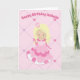Essa adorável princesa rosa, feliz cartão de aniversário, mostra um desenho de uma menina bonito loira vestindo um lindo vestido de bola rosa. Personalize este cartão de aniversário de crianças fofinhas com o nome do seu filho entre o padrão cardíaco divertido.