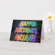 Este vibrante, multicolorido e divertido design de saudação de aniversário apresenta a mensagem "HAPPY BIRTHDAY" e o nome comum "ARIANA" com as letras que têm um espectro colorido do arco-íris como um padrão de colorir gradiente. O plano de fundo da frente também apresenta um padrão colorido inspirado pela aparência de fogos de artifício que explodem. O dentro apresenta uma mensagem de saudação personalizável, ou talvez possa ser apagado e deixado o vazio se uma mensagem for escrita manualmente. Esta pode ser uma maneira divertida de reconhecer o aniversário de alguém chamado Ariana. [~Z0000350]