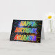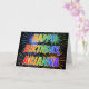 Este design de cartões de saudação de aniversário multicolorido e divertido apresenta a mensagem "FELIZ BIRTHDAY" e o nome comum "ARIANNA", com as letras que têm um espectro colorido do arco-íris como um padrão de colorir gradiente. O fundo da frente também apresenta um padrão colorido inspirado pela aparência de fogos de artifício comemorativos em explosão. O dentro apresenta uma mensagem de saudação personalizada, ou talvez possa ser apagado e deixado vazio se uma mensagem for escrita manualmente. Um cartão de cumprimentos de aniversário como este pode ser divertido de dar a alguém chamado Arianna no seu aniversário. [~Z0000350]