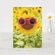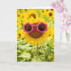 Óculos de sol cor-de-rosa no girassol no campo de girassol para o Dia do Nome,