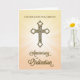 Uma carta mostrando uma cruz sobre um fundo estelar, traz vida e foca na cruz. A frente pode ser personalizada com o nome do padre que torna a ocasião religiosa completamente especial. Esta é uma maneira perfeita de enviar seus desejos e orações de bençãos a alguém em um 60º Aniversário da Ordenação.