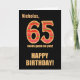 Um cartão de aniversário contemporâneo de 65 anos para personalizar para qualquer pessoa, mas que pode apelar particularmente a um homem. Há um grande número 65, esboçado em efeito-ouro e cheio de listras vermelhas, laranja e verdes brilhantes, sobre fundo preto. A saudação do cobrir diz: "65 parece bem em você! FELIZ ANIVERSÁRIO!' em letras ousadas de efeito ouro e há espaço no topo para você adicionar o nome do destinatário. A mensagem dentro também pode ser personalizada.