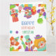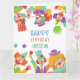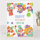 Modelo do cartão de saudação de aniversário de nome personalizado da festa de aniversário de circo de palhaço.