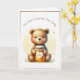 Dia de os namorados de Urso de Mel Personalizado Nome da Menina Curta. Apresenta um quadro de ouro luxo e um ursinho fofo segurando um boião de mel com nome no rótulo. Mude isso facilmente para o nome de uma garota curta para uma bela saudação personalizada de Dia de os namorados. Inclui texto personalizável que lê: Nosso Amor É Mais Bonito Que Mel. Também tem uma saudação tradicional: Feliz dia de os namorados acima de um grande coração de ouro. Surpreenda sua querida com esta linda expressão de amor e ordene hoje!