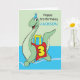 Para celebrar o aniversário de 3 anos de um bebê, este cartão é perfeito para dar. Tem um dinossauro fofo gritando para fazer uma festa num cartão azul e verde. Você pode personalizar com o nome do garoto para torná-lo mais especial. Mande seus desejos para ele no dia especial dele.