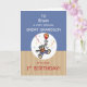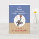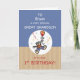 Este é um cartão de ursinho de pelúcia fofo para o seu neto excelente no primeiro aniversario dele. Personalize-o com seu nome para um toque verdadeiramente personalizado. O urso está voando com um balão. Confetti e pontos brancos rodeiam o urso doce, acrescentando um toque festivo.