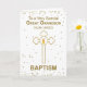 Celebre o dia sagrado do batismo do seu neto excelente com esta elegante saudação personalizada. Uma cruz dourada cintilante criada digitalmente com uma chama brilhante no seu centro simboliza a luz do Cristo, rodeada por um confete de ouro espalhado por um sentimento alegre e comemorativo. A mensagem na frente homenageia um neto excelente muito especial, enquanto a bênção dentro oferece calor, amor e encorajamento espiritual quando ele entra na família de Deus. Perfeito para famílias católicas ou cristãs que querem dar uma confiança cheia de fé e sincera que pode ser personalizada apenas para ele. (NÃO SE UTILIZA REAL GLITTER> DIGITALMENTE CRIADO APENAS)