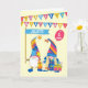Um cartão de aniversário divertido para você personalizar com o nome e a idade do destinatário. O cobrir da frente tem dois gnomos bonitos, um segurando uma faixa com espaço para você adicionar o nome e o outro segurando um balão vermelho onde você pode adicionar a idade. Os gnomos baseiam-se no "tomo" do folclore escandinavo, o macho com barba branca longa e a fêmea com palhaços louras grossas, ou tranças. Ambos têm chapéus muito altos que cobrir seus olhos; eles têm narizes grandes e cada um deles é um carregando de presentes, assim como o banner e o balão. O "Parabéns" está escrito em letras brancas no beliche colorido no topo e a cor de fundo é um amarelo muito pálido e brilhante. A mensagem dentro é apenas uma sugestão e você pode alterá-la facilmente ou apagá-la se desejar.