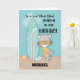 Este guaxinim legal na frente deste cartão divertido está cumprimentando seu excelente de excelente neto um feliz aniversário enquanto aproveita seu dia de surfe na praia. Isso lembrará a sua amada que verão é hora de aniversário e diversão.