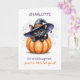 Torne-a mais mágica do Dia das Bruxas com uma carta personalizada só para ela! Este doce design apresenta um gatinho preto dentro a bompkin, vestindo um chapéu de bruxa branco, com salpicos coloridos de Halloween. O nome do receptor aparece acima da imagem, e a mensagem abaixo diz "neta, você é MEOW-gical!" — uma mistura perfeita de doçura e diversão. Projetado para encantar netas de todas as idades com um toque de magia do Halloween.