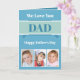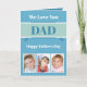 Personalize este Cartão de Saudações para o aniversário de Dia de os pais ou Pai. Há três fotos na frente e outras três na dentro à esquerda. Projetado em azul e verde. Nós te amamos Pai. Esperamos que seu dia seja tão especial quanto você.