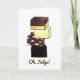 O design foodie apresenta uma ilustração original de marcador de uma pilha de quadrados de fudge em manteiga de amendoim de chocolate, baunilha, marshmallow de chocolate e chocolate escuro, e OH FUDGE! em uma fonte divertida. Ideal para enviar saudações de aniversário atrasadas.
