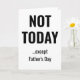 Featuring the phrase "NOT TODAY...except Father's Day" in bold, minimalist typography, this card offers a playful way to mark the occasion without going over the top. Simple, funny, and confident in tone.
