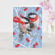 Um belo par de frangas em seus lenços em uma árvore cheia de winterberry nevada. Repetição em miniatura do design no dentro da placa. Encantadoramente ilustrada pela artista L Diane Johnson.