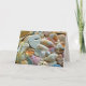 Uma fotografia bonito de uma célula cobrir a frente de cartões de nota dobrados que são dentro vazio para escrevendo sua própria mensagem pessoal. Mantenha contato com esta saudação do tema costeiro.