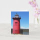Belo Notecard Apresentando o famoso marco O Pequeno Farol Vermelho do Livro Famoso Mundial O Pequeno Farol Vermelho e A Ponte da Cinza Excelente por Hildegarde Hoyt Swift. O farol está localizado em Fort Washington Park próximo à Ponte George Washington na área Washington Heights de Manhattan em Nova Iorque. Fotografia original de Lianne K. Coleman