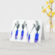 Éreal e sereno, penas encontradas em garrafas de vidro azul cobalto fazem um cartão fantasma e artístico.