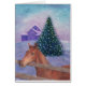 Cartões de natal nevado com esta pintura requintado do cavalo, quadro pela árvore de Natal do twinkling. A paisagem quieta & calma do inverno aterrada na beleza & personifica o valor artístico tradicional. Noturno do inverno do país pelo judithchengart.