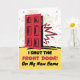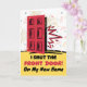 Novo anúncio de casa e endereço, cartão de saudação em papel. Possui uma porta vermelha sendo fechada ou fechada. Tem um dentro de mensagem fofo. Eu fechei a porta da frente! Na Minha Nova Casa. Edite o texto do cobrir, linha inferior e adicione o novo dentro de endereço. Arte, imagem e direitos de autor versos © Shoaff Ballanger Studios, 2024.