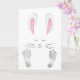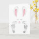 Rosto de coelho bonito com orelhas cor-de-rosa e buquê floral com pegadas de bebês recém-nascidos para a nova Menina.