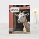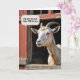 Uma cabra fazenda a espreitar para fora de uma janela rustica de celeiro com uma bolha de fala para um 95 anos. Todo o texto pode ser alterado.