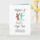Cartão de parabéns ilustrado e engraçado com dois amigos de alta-fé.