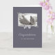 Um novo cartão de precioso de parabéns para bebês com uma fotografia de pés para bebês recém-nascidos que ainda vestem a banda hospitalar enquadrada num delicado padrão de folha e uma fita amarrada num arco contra um fundo de lavanda para um bebê ou uma menina.