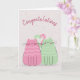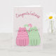 Felinos cor-de-rosa e verdes com caudas cardíacas desenhadas em fundo terrazzo.