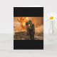 This provocative greeting card offers a darkly humorous take on love with a bold, eye-catching design that juxtaposes romance and catastrophe. The cover features a stark, graphic illustration of two people locked in a passionate kiss, framed against the backdrop of a massive, stylized nuclear blast.