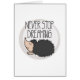 O cartão bonito com o ouriço tirado dos desenhos animados mão lisa e as citações inspiradas e inspiradores nunca param de sonhar em uma luz do círculo - quadro azul em um fundo branco. | Bigstock® - todos os direitos reservados.