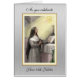 Verso personalizável com a tradicional freira católica no altar mirando sobre o Crucifixo enquanto o Coração Sagrado brilha sobre ela.