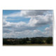 Fotografia de nuvens cumulus desvanecendo-se à distância contra um céu azul com árvores abaixo.